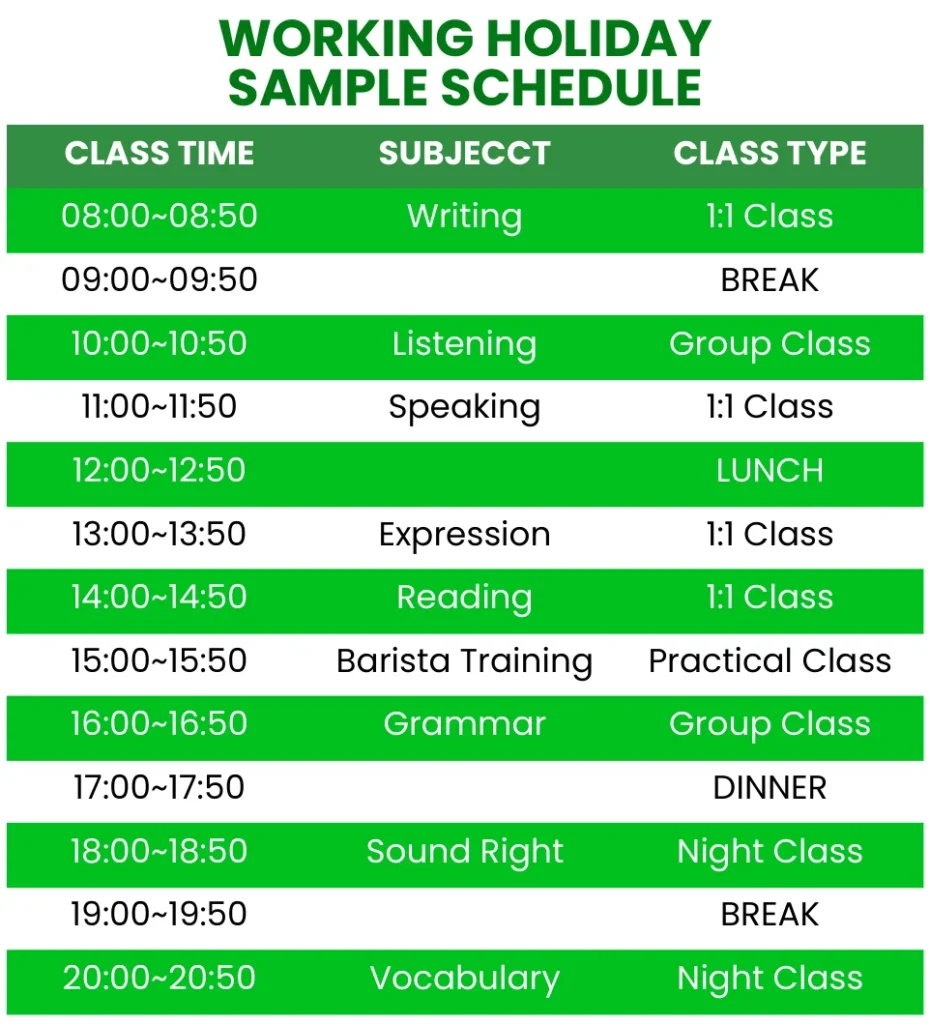 This course is designed for students getting ready for a working holiday. It assists candidates in securing their desired job by emphasizing the acquisition of practical and useful phrases through extensive conversation practice tailored to various scenarios.
